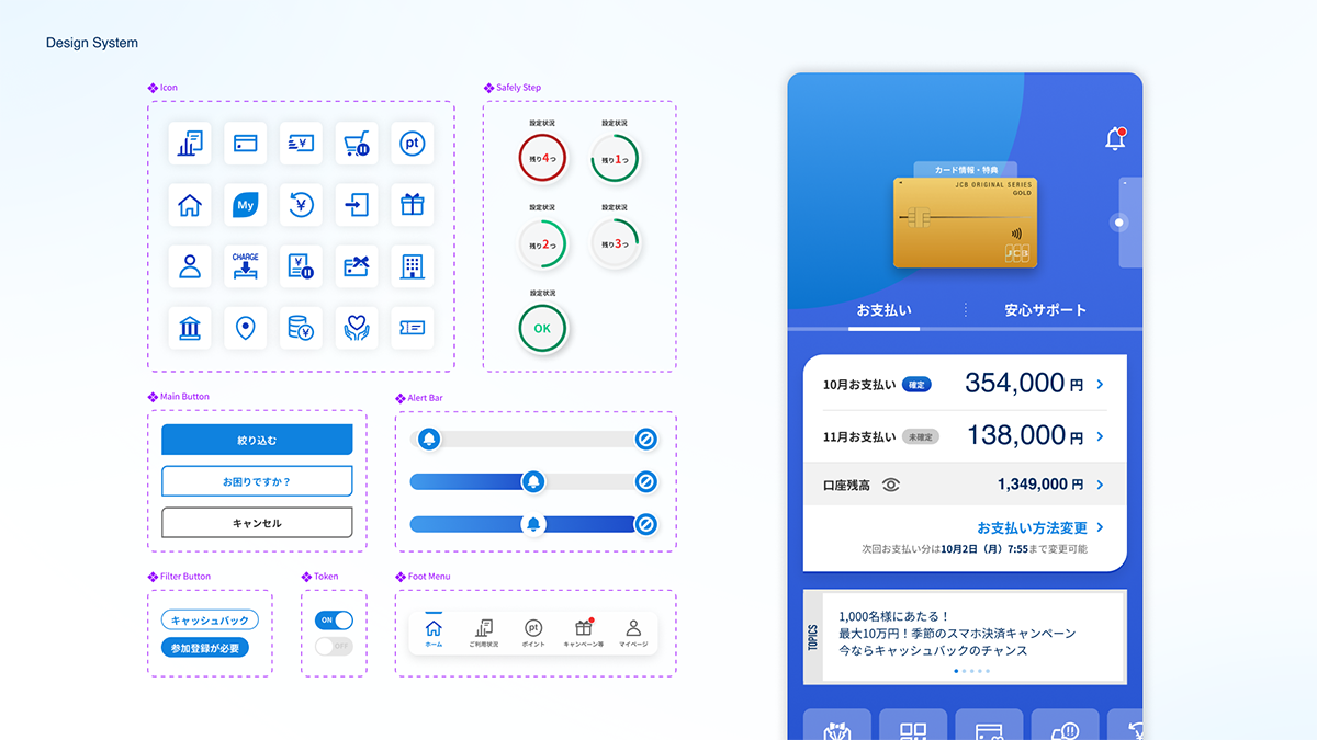 MyJCB is a credit card management application provided by JCB, Japan's only international payment brand, designed to serve users across all age groups with varying levels of IT and financial literacy. In Japan's growing cashless society, where users prioritize secure and reliable usage over convenience, the application was developed under the concept of "Card-App Integration" to revolutionize the unchanged credit card experience and communication, while addressing challenges such as difficulty in tracking card usage and increasing fraud risks.