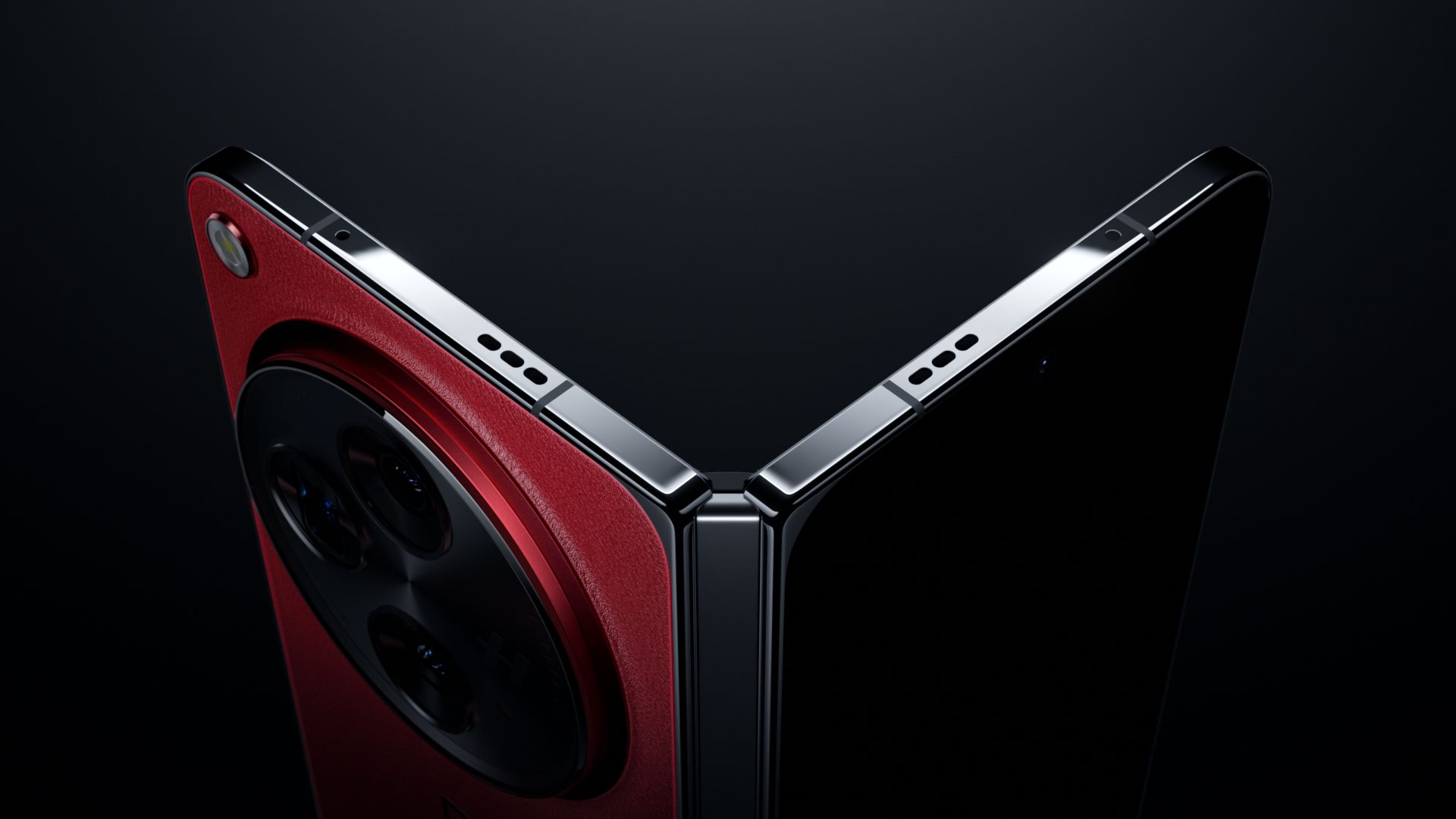 Building on this, the phone’s materials and mechanical structure are presented as an artistic expression in fluid motion: red leather unfurls like silk against a deep black backdrop, spreading in gentle ripples that gradually outline the device’s contours and ultimately crystallize into the texture of the phone’s back cover. As light and shadow shift, the internal mechanisms are revealed step by step—the liquid metal contracts and shapes itself while nuts fasten in rhythm, pulsating with vitality, reminiscent of a dancer stretching and preparing before stepping onto stage. Every visual transition unfolds with precision, reflecting the product’s intricate and orderly engineering.
