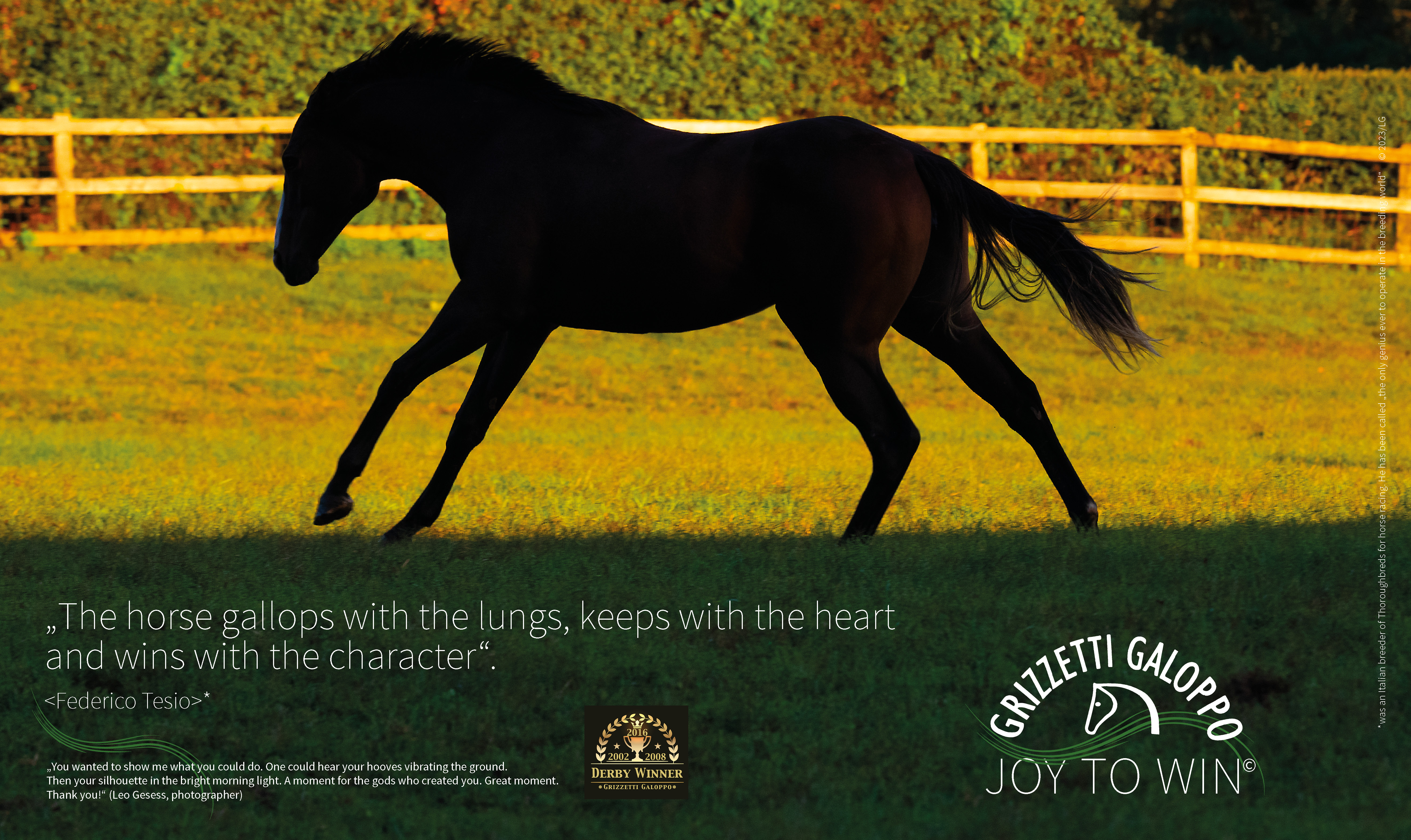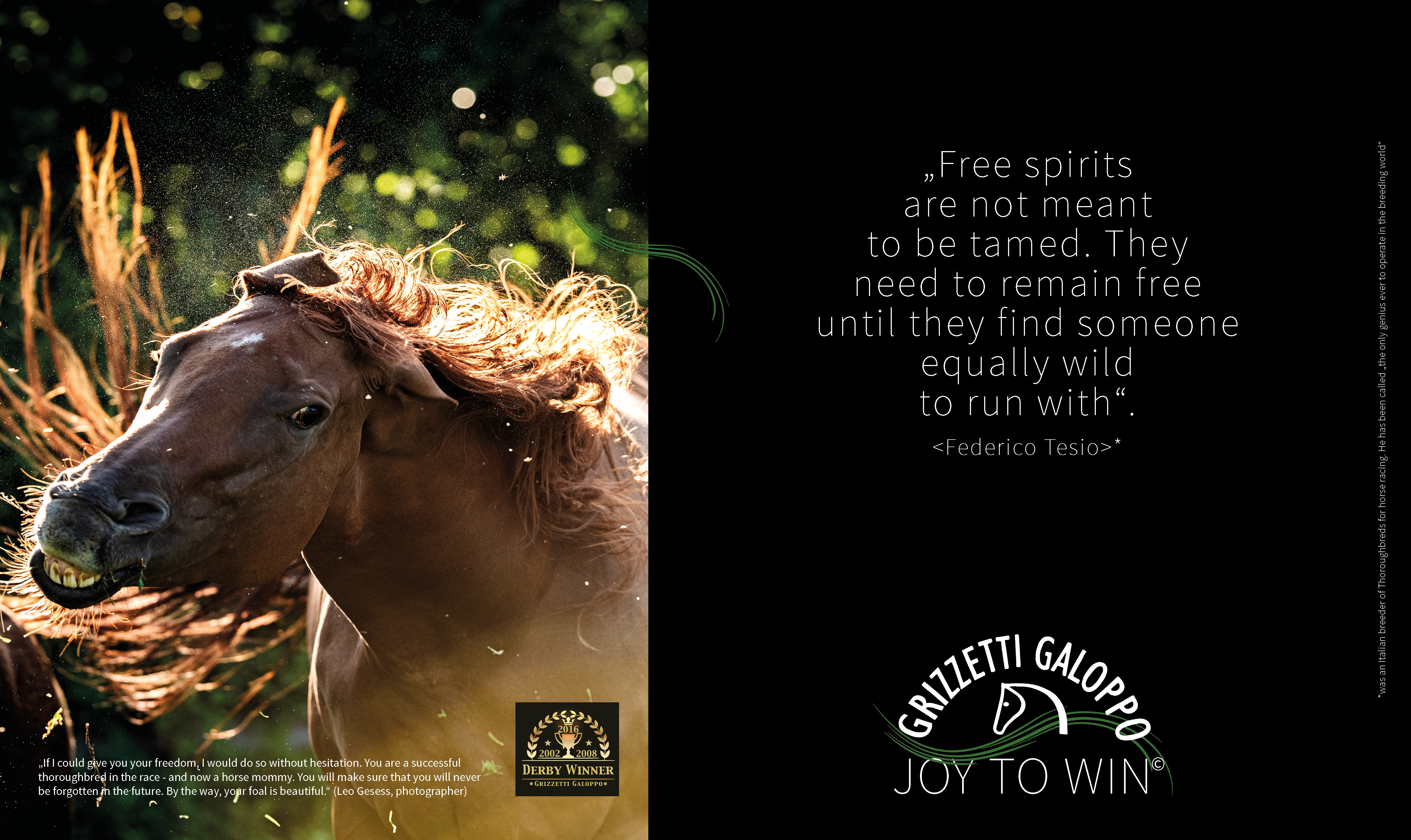 The Grizzetti Galoppo campaign is aimed at a broad, interested public with a certain affinity for horses and sport in general. It aims to promote the attractiveness of this sport and events and to sensitize people to participate. A rather unusual campaign, since in this area the marketing and advertising measures are very much neglected.